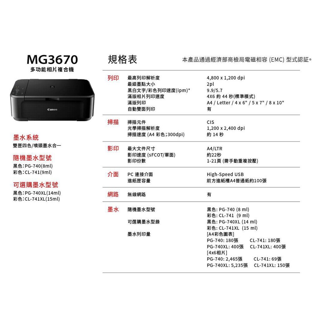 Canon PIXMA MG3670 多功能相片複合機 廠商直送