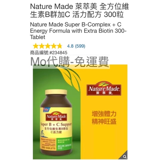 M代購 免運費 Costco好市多 Nature Made 萊萃美 全方位維生素B群加C 活力配方 300粒
