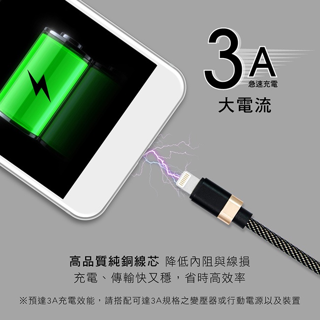 iphone充電線》蘋果編織布面充電傳輸線USB-A910(3A大電流蘋果充電線蘋果傳輸線充電+傳輸3年保固