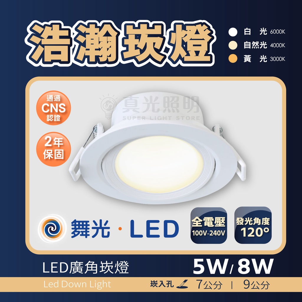 舞光 浩瀚崁燈 LED 8W 5W 9公分 7公分 均勻發光面 崁燈 可調角度