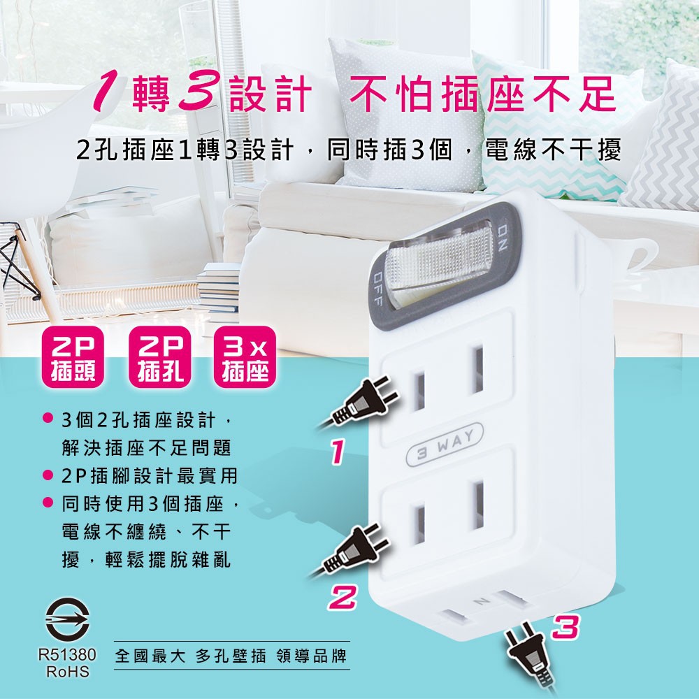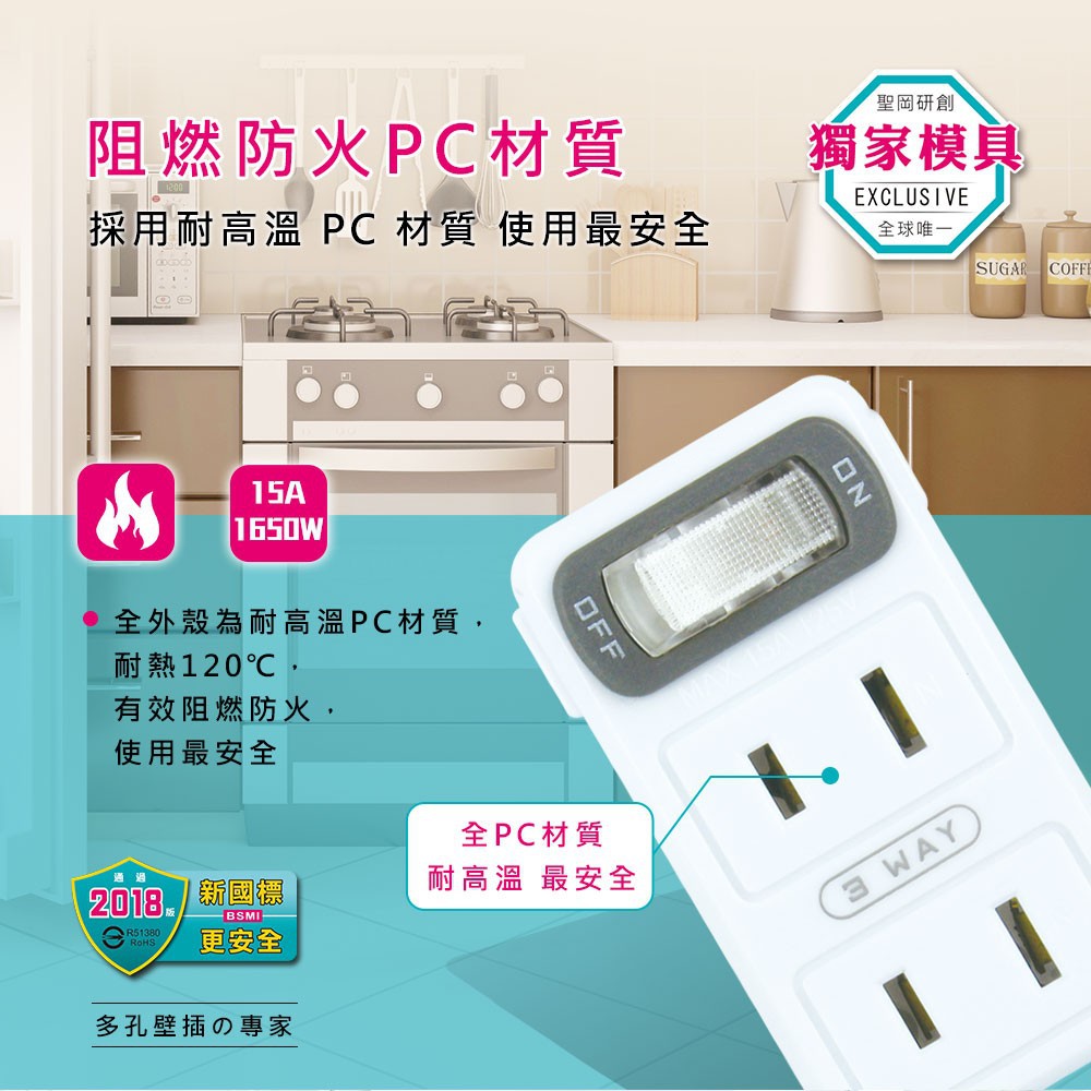 新版安規 實用牌 1開3插分接器 壁插 分接器