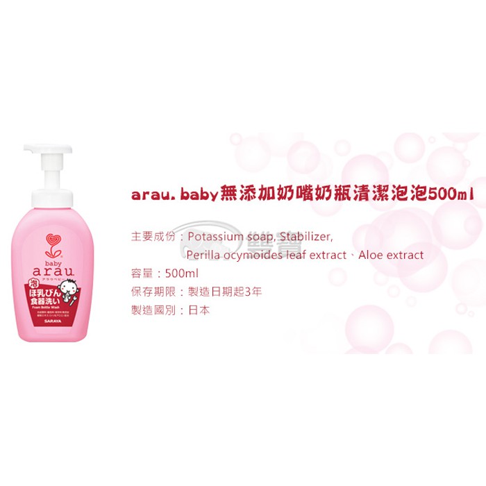 嬰兒棒 arau baby愛樂寶寶貝無添加奶嘴奶瓶 清潔泡泡500mL 日本原裝