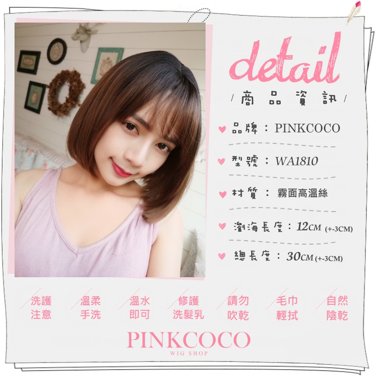 PINKCOCO 粉紅可可 假髮【WA1810】 英倫情懷 大頭皮 微彎短髮 整頂假髮