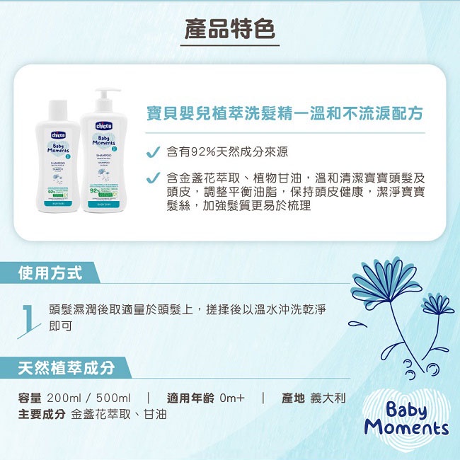 Chicco 寶貝嬰兒植萃洗髮精 200ml / 500ml -溫和不流淚配方