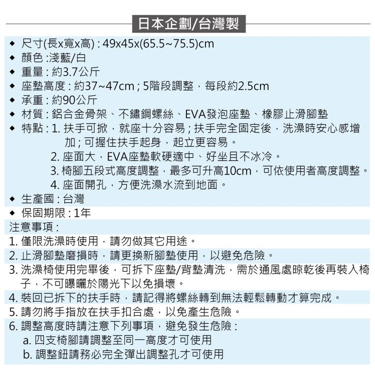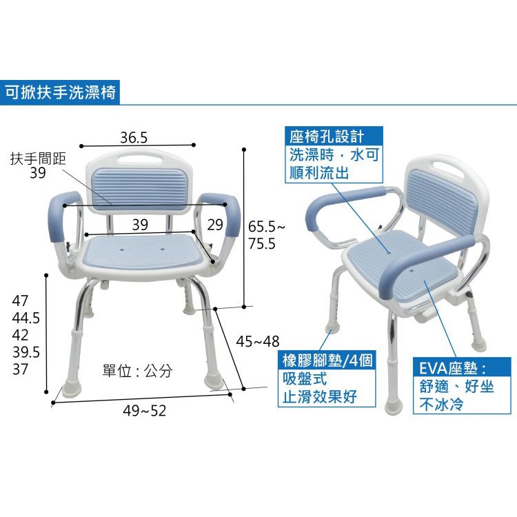扶手可掀洗澡椅-DIY/需自行組裝 重量輕 銀髮族 扶手可掀 老人用品 日本企劃/台灣製 [ZHTW1722]