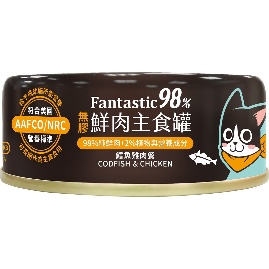 遛福村-汪喵星球【貓用98%鮮肉無膠主食罐】 Fantastic98%貓咪主食罐 無膠 貓罐頭 貓主食 飼料 80g