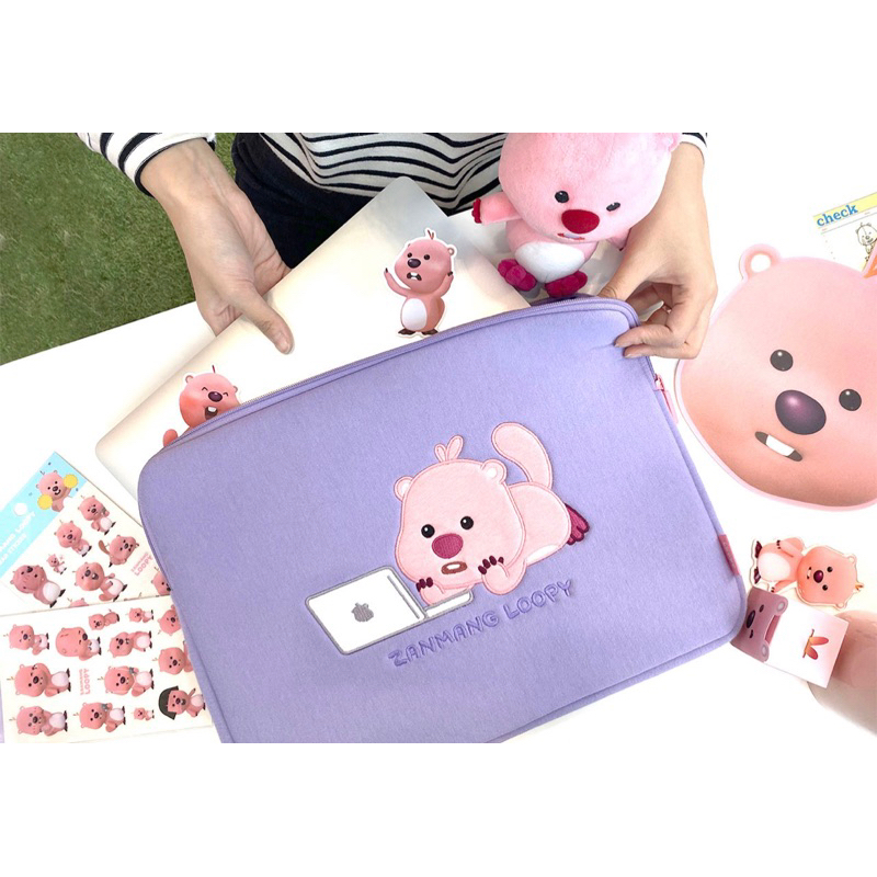 얌얌 YumYum 🌷韓國代購 / Pororo뽀로로家族Loppy루피 紫色筆電收納包 13吋 韓國小海狸💜