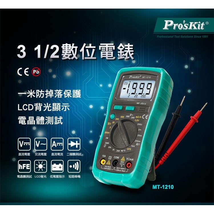 台灣寶工 數位電錶MT-1210 晶體測試 LCD背光 數位電表 三用電表 三用電錶 電工 水電