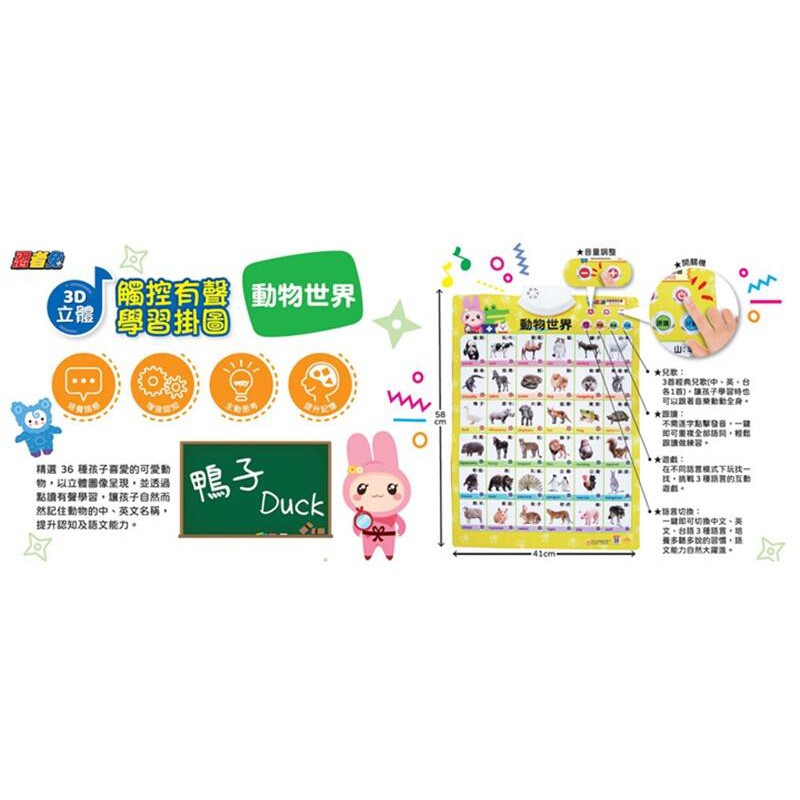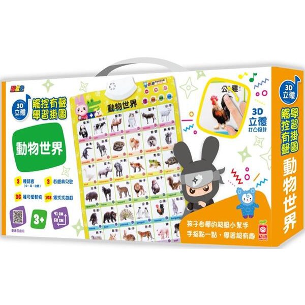 @Ma蓁姐姐書店@幼福--忍者兔3D立體觸控有聲學習掛圖:動物世界(庫存特價)