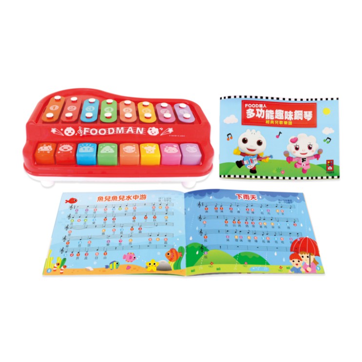 風車 FOOD超人 多功能趣味鋼琴(附樂譜本和敲打棒) 小鋼琴 寶寶琴 多功能 敲打琴【公司貨】小鼠的窩🌸
