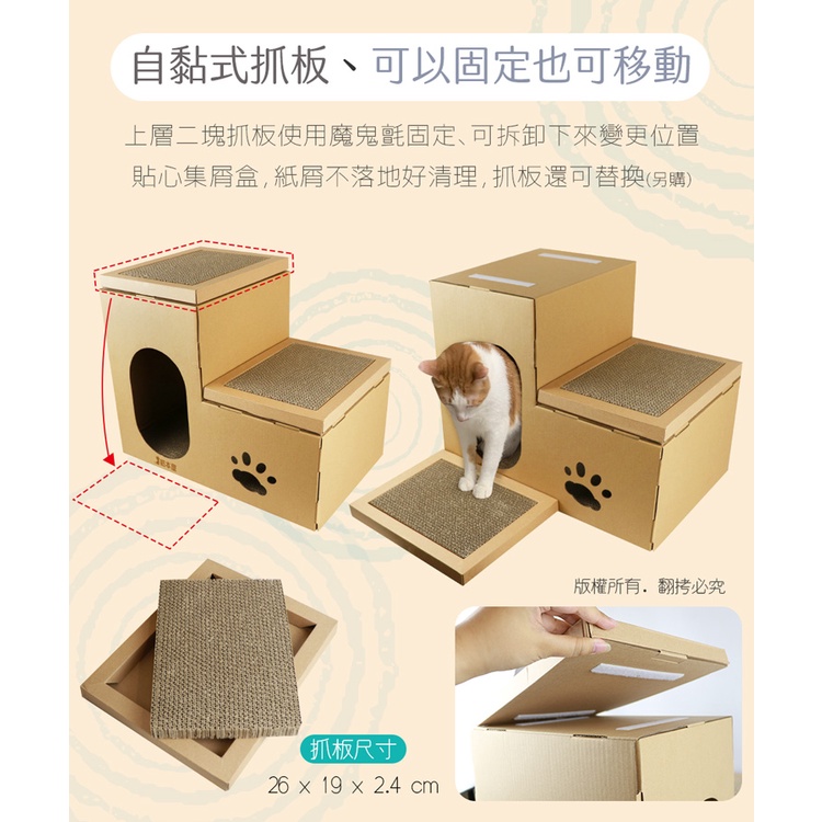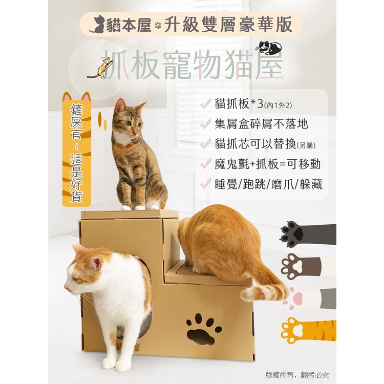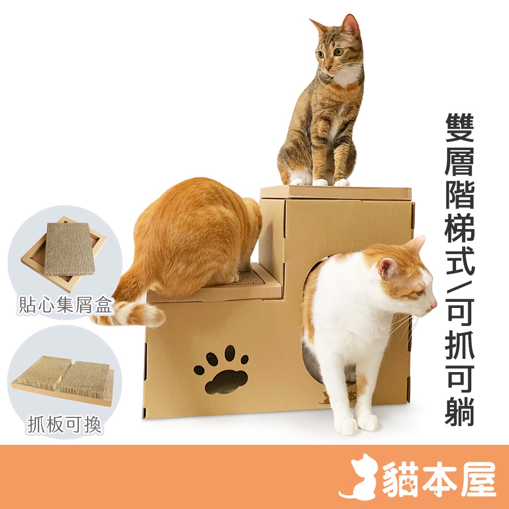 貓本屋 高級版 雙層階梯 貓抓板貓樂園貓屋 附集屑盒 貓抓板 貓跳台 貓屋 貓咪紙箱 貓窩 DIY組裝 附貓草【現貨】