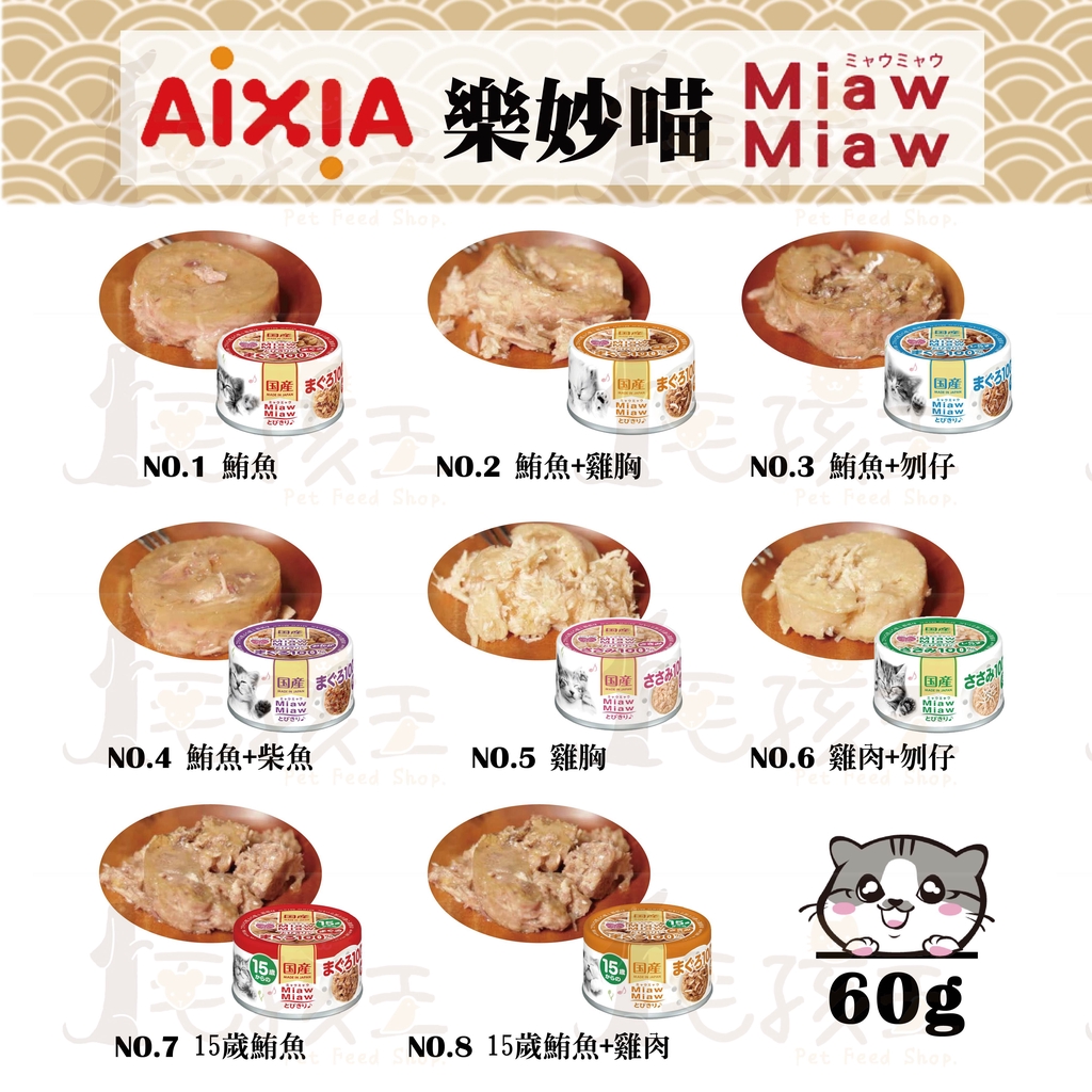 ☆毛孩王☆日本 AIXIA 愛喜雅 樂妙喵 貓罐系列 60g*24罐 貓餐罐 (鮪魚、雞肉基底) 樂妙喵 妙喵 貓罐 貓