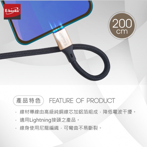 E-books XA11 蘋果 Lightning 鋁合金充電傳輸線 2M 充電線 傳輸線
