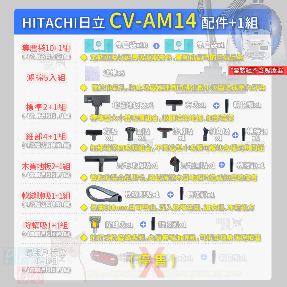 【ProGo】 HITACHI 日立 CV-AM14 吸塵器 集塵袋10+1組(共11個)CV-P6 CVAM14