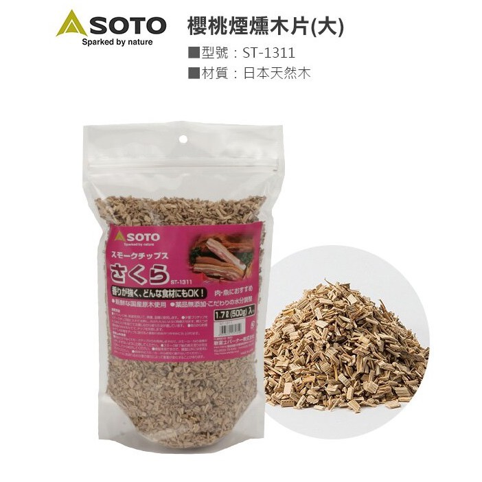 【野道家】SOTO 煙燻木片-大(500g)/小(100g) 櫻桃/蘋果/經典/胡桃/橡木
