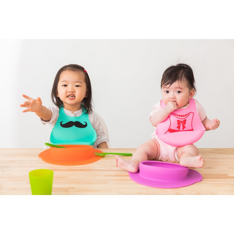 [台灣現貨] Farandole 翹鬍子藍綠矽膠圍兜禮盒附專用禮袋 台灣製造最安心