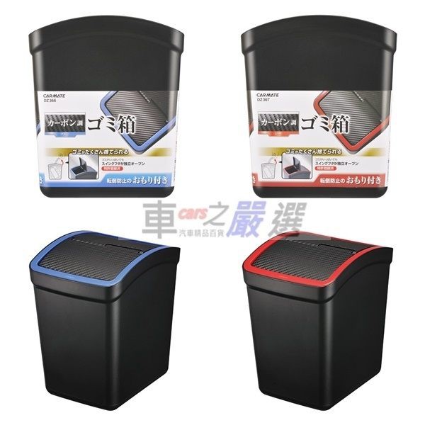 日本CARMATE 車用碳纖紋低重心設計 防傾倒左右有蓋垃圾桶 置物桶 DZ366