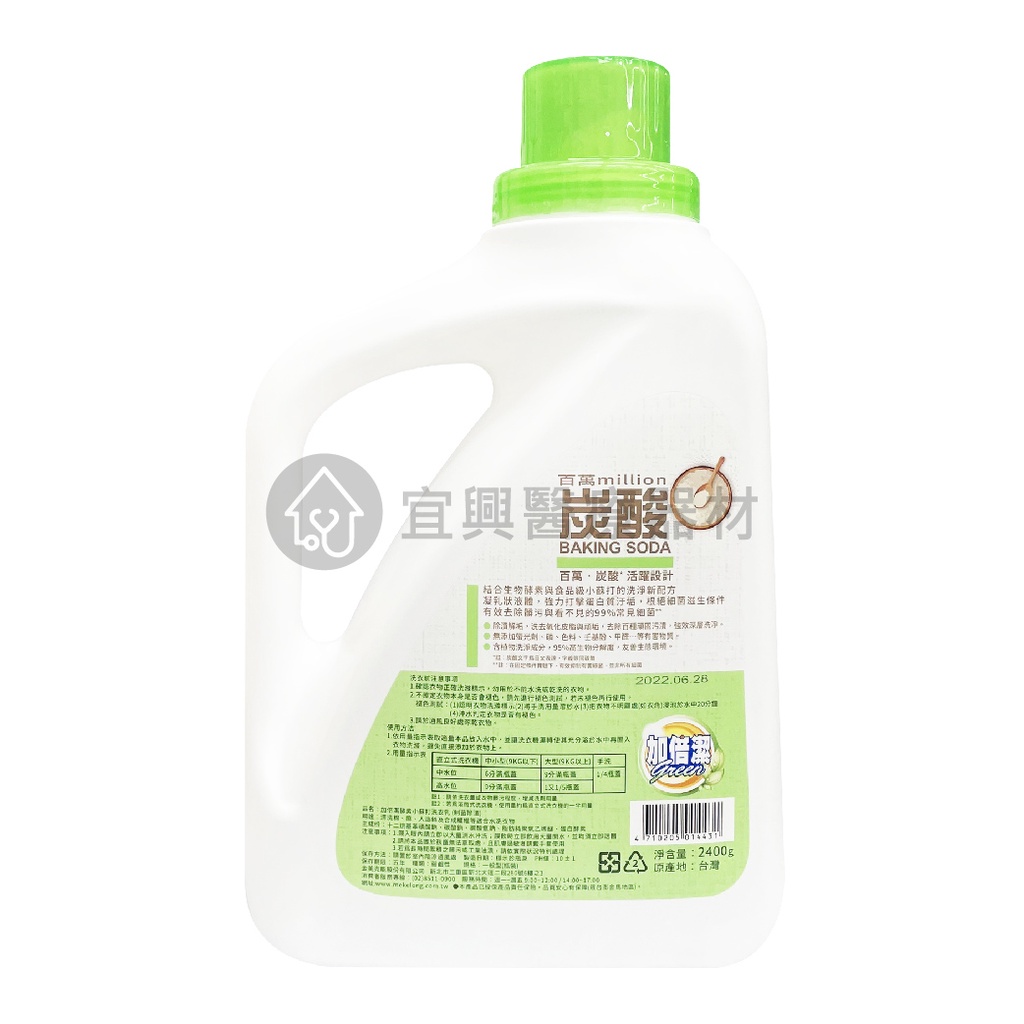 【加倍潔】加倍潔 酵素小蘇打洗衣乳 2400g/瓶 : 去螨、除漬、消臭