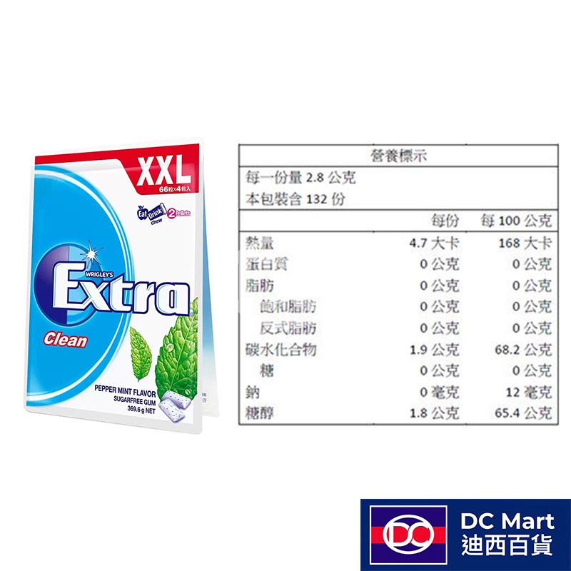 【迪西百貨】 台灣出貨 Extra 益齒達 口香糖 薄荷無糖口香糖 92.4公克 X 4入 潔淨無糖口香糖