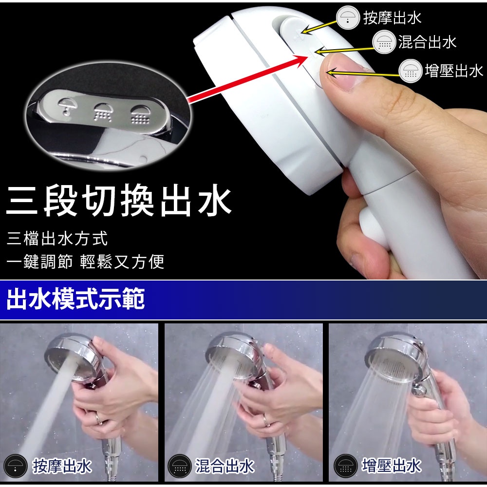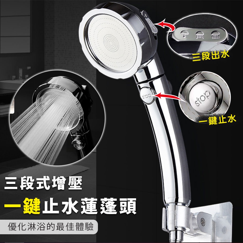 三段式增壓止水蓮蓬頭/現貨 蓮蓬頭 淋浴 花灑 衛浴用品