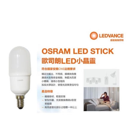 OSRAM歐司朗 7W E14/E27 白光 黃光LED燈泡 小精靈 小晶靈 小雪糕 體積小 發光角度大 省電燈泡
