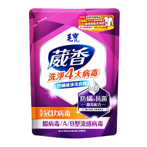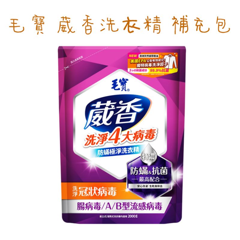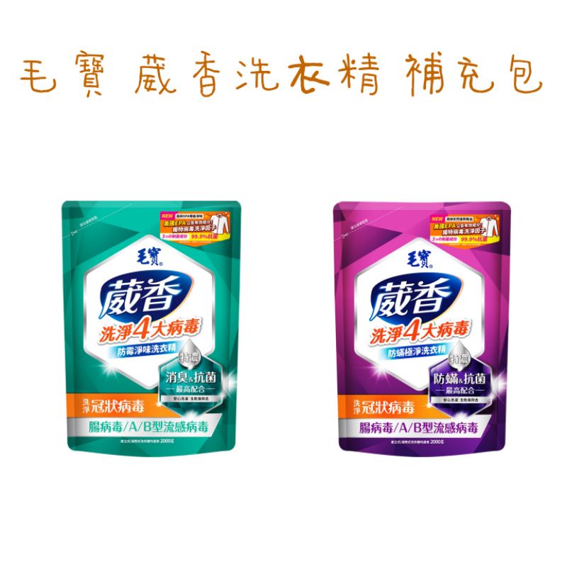 毛寶 葳香 抗菌洗衣精 補充包(2000g)防霉淨味/防蟎極淨 毛寶葳香洗衣精 (超取限2包)葳香洗衣精