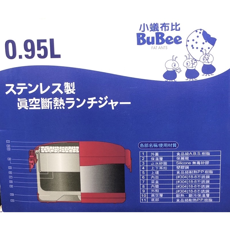 三光牌小蟻布比 J-950EB佳用不銹鋼便當飯盒0.95L附提袋 304不銹鋼 台灣製 便當盒 保溫保冷 飯盒