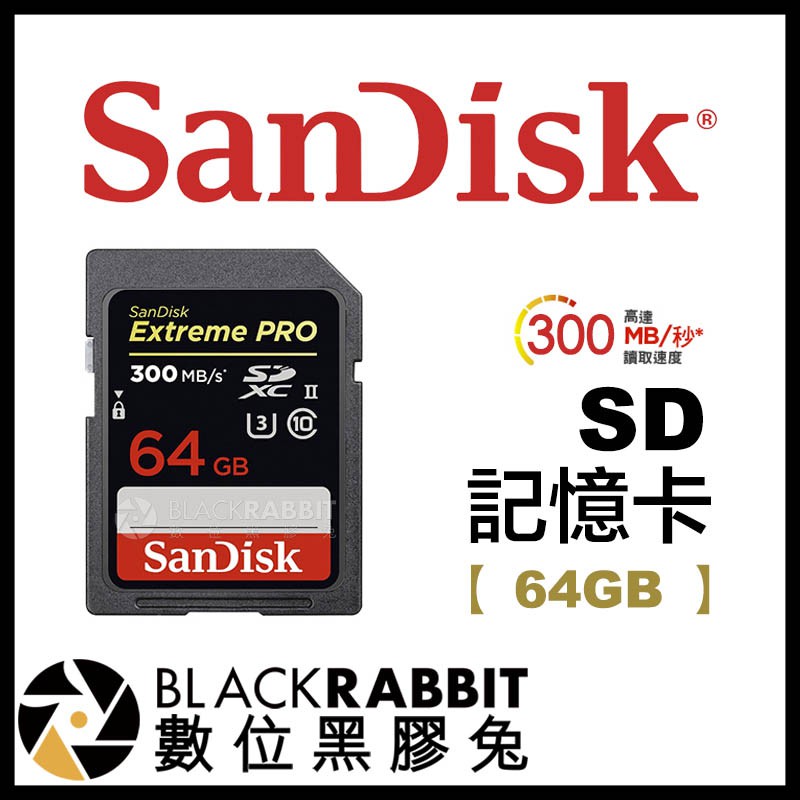 【 Sandisk Extreme Pro SD 記憶卡 64GB 讀取300MB/S 】 64G 數位黑膠兔
