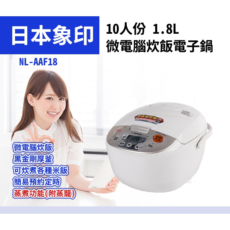 象印10人份微電腦電子鍋NL-AAF18原廠公司貨