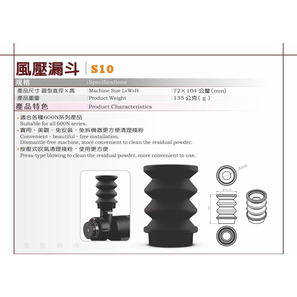 【配件】小飛馬 600N系列專用 S10風壓漏斗 按壓式吹氣 清潔 免安裝 『93coffee』