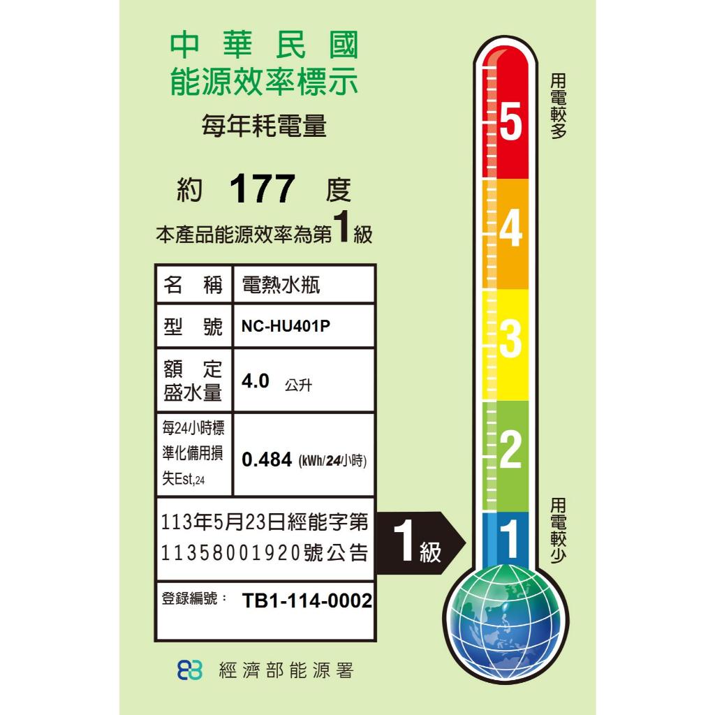 Panasonic國際牌 熱水瓶NC-HU401P (原廠享保固) 4公升 能源效率第一級
