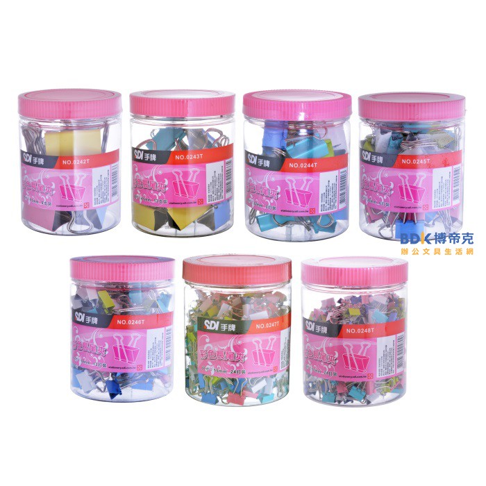SDI 手牌 彩色長尾夾(桶裝) 19mm 0246T