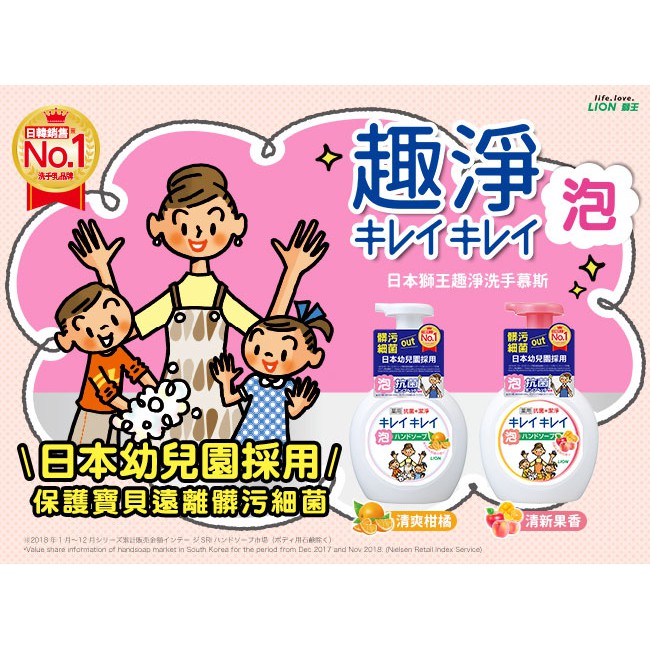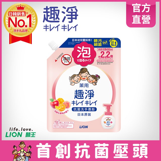 現貨!!日本原裝 獅王 LION 趣淨洗手慕斯250ml 補充包200ml 450ml(清爽柑橘/清新果香)