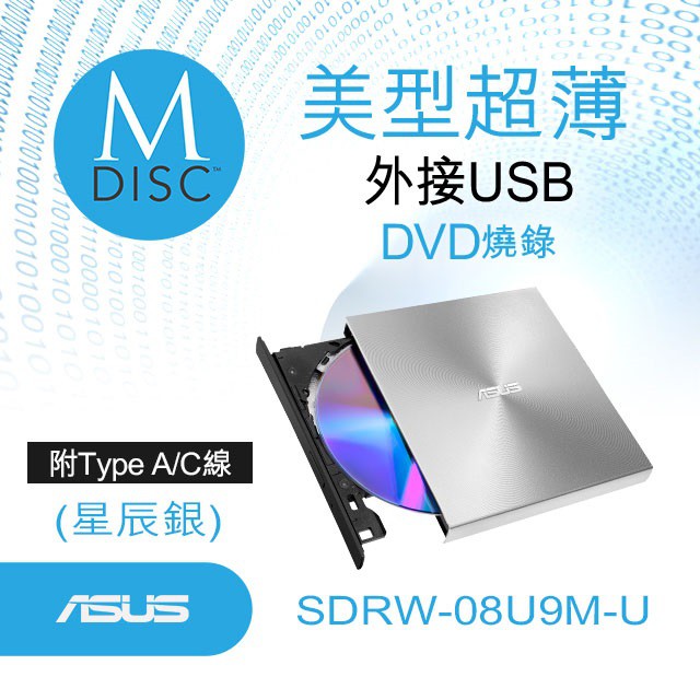 ASUS SDRW-08U9M-U DVD外接燒錄機(現貨) CD光碟 華碩 可兩種USBA/USBC連接