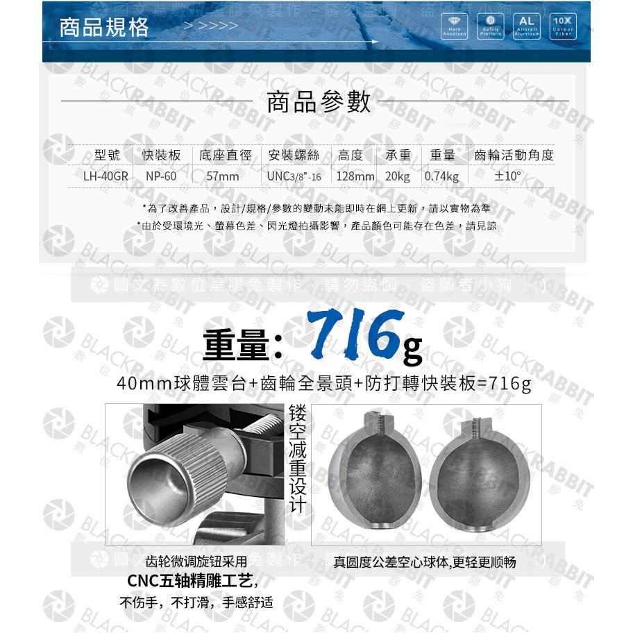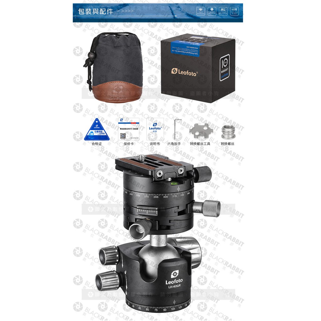 【 LEOFOTO 徠圖 LH-40GR 專業 3合1 齒輪 球形 全景雲台】數位黑膠兔