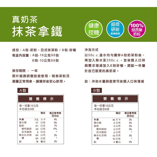 【姐姐妹妹】OK TEA😉😉歐可茶葉真奶茶-抹茶拿鐵8包/盒(原廠包裝)