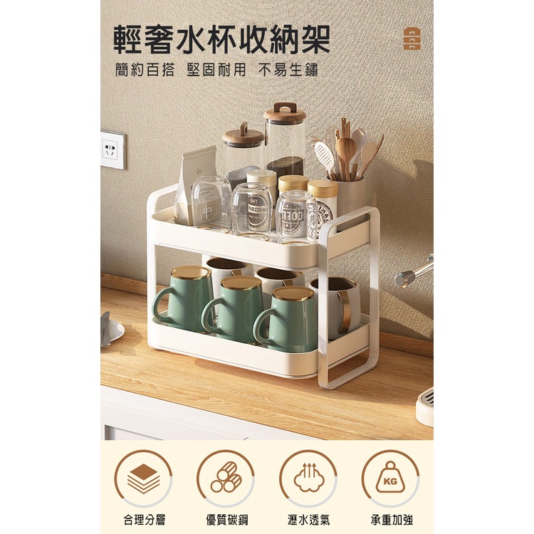 (i家) 廚房分層瀝水置物架 廚房收納架 杯架 金屬水杯瀝水架 馬克杯架 杯子層架 廚房收納層架