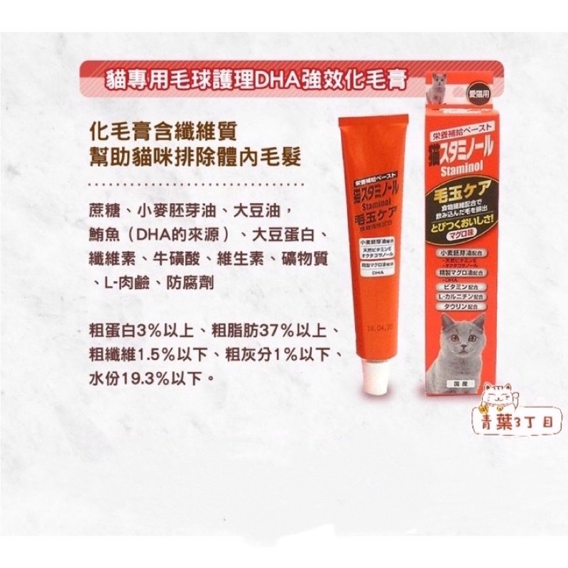 【青葉3丁目】[Staminol 貓專用DHA強效化毛膏/補充營養膏50g]DHA日本進口|毛球護理|營養補充|排毛化毛