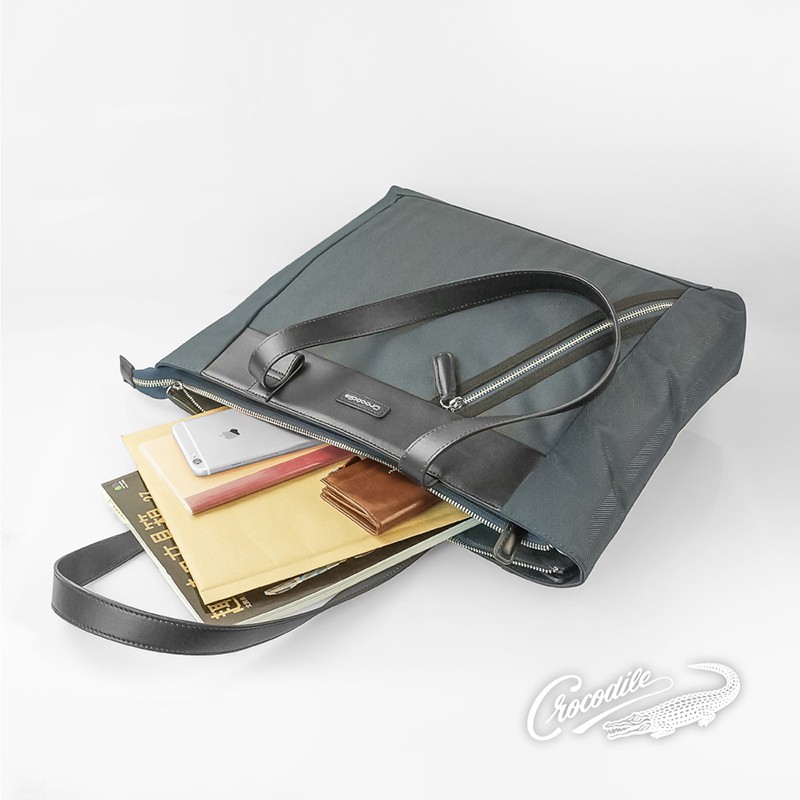 Crocodile 鱷魚皮件 男側背包 布配皮 橫式托特包 肩背包 Snapper3.0系列 0104-09906-綠色