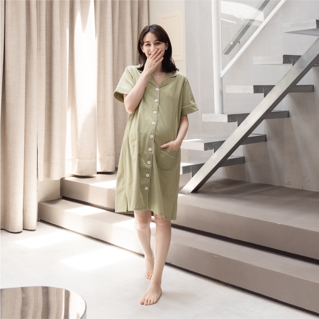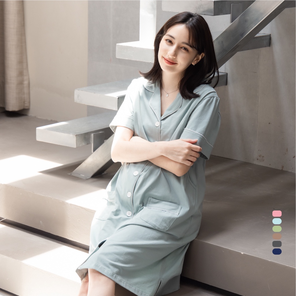 Mamamia孕婦裝 好感素面居家哺乳洋裝 M~XXL 哺乳套裝 喂奶衣 短袖 哺乳衣 月子服 孕婦裝 [A1845]