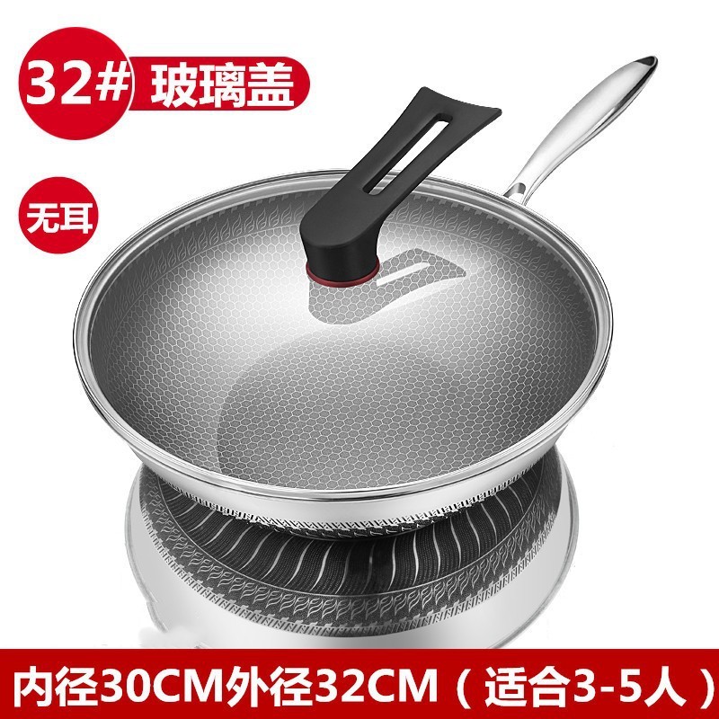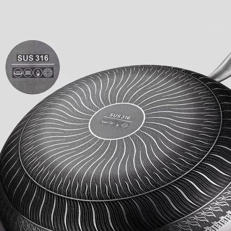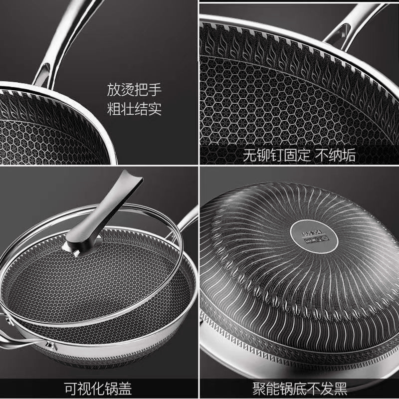 【台灣現貨】316 不鏽鋼鍋 炒鍋 不粘鍋 鍋內無柳釘 平底鍋 34cm 平底鍋 炒菜鍋 無塗層 蜂窩紋 電磁爐燃氣灶適