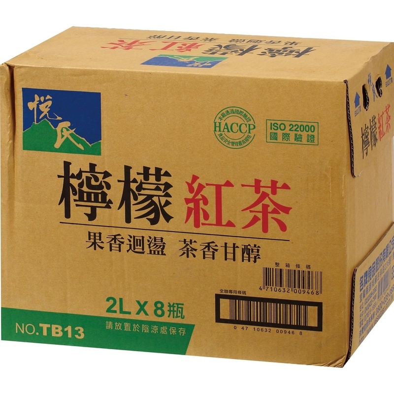 悅氏 檸檬紅茶_2000ml x 8【箱購】【家樂福】