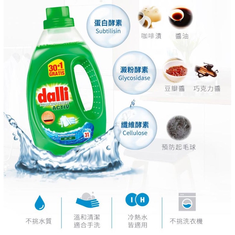 【德國達麗Dalli】全效超濃縮酵素洗衣精(1.1L/綠瓶)- dalli 強力洗淨去漬油除臭