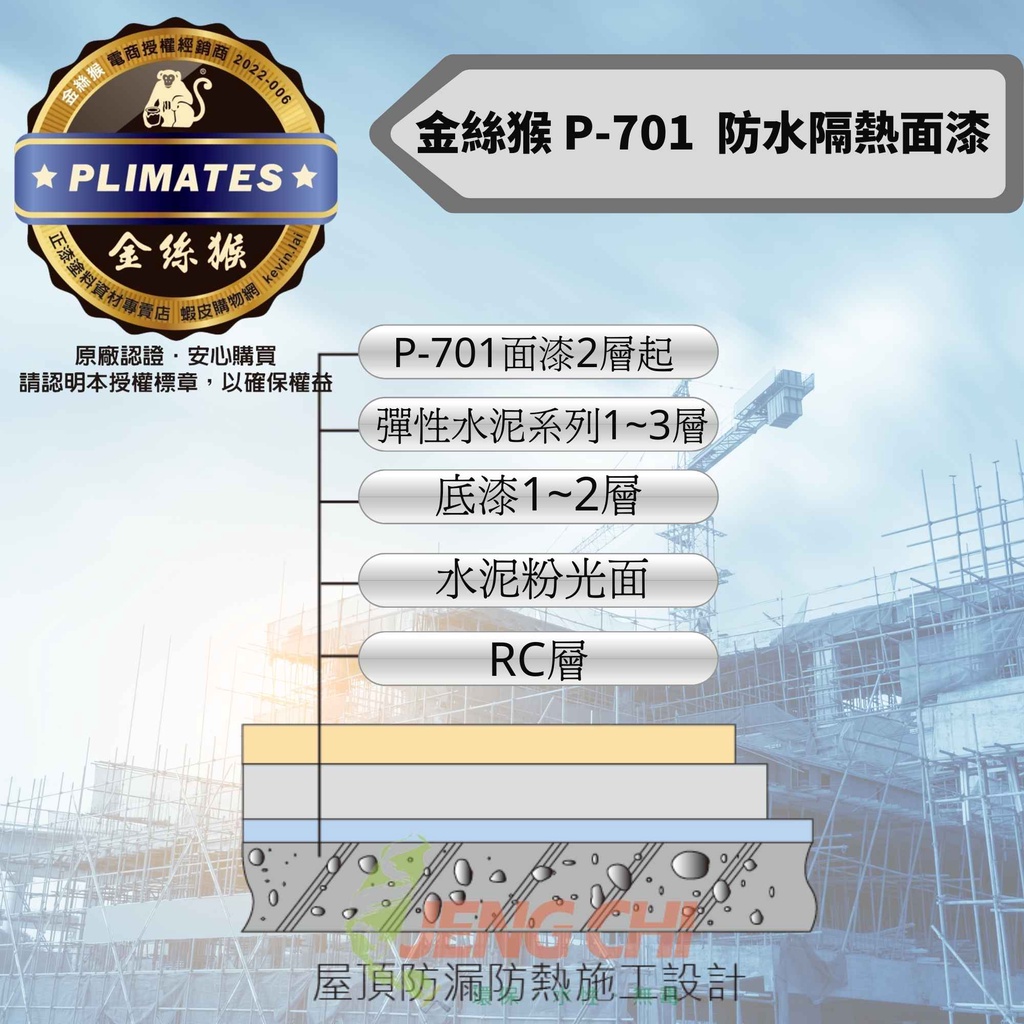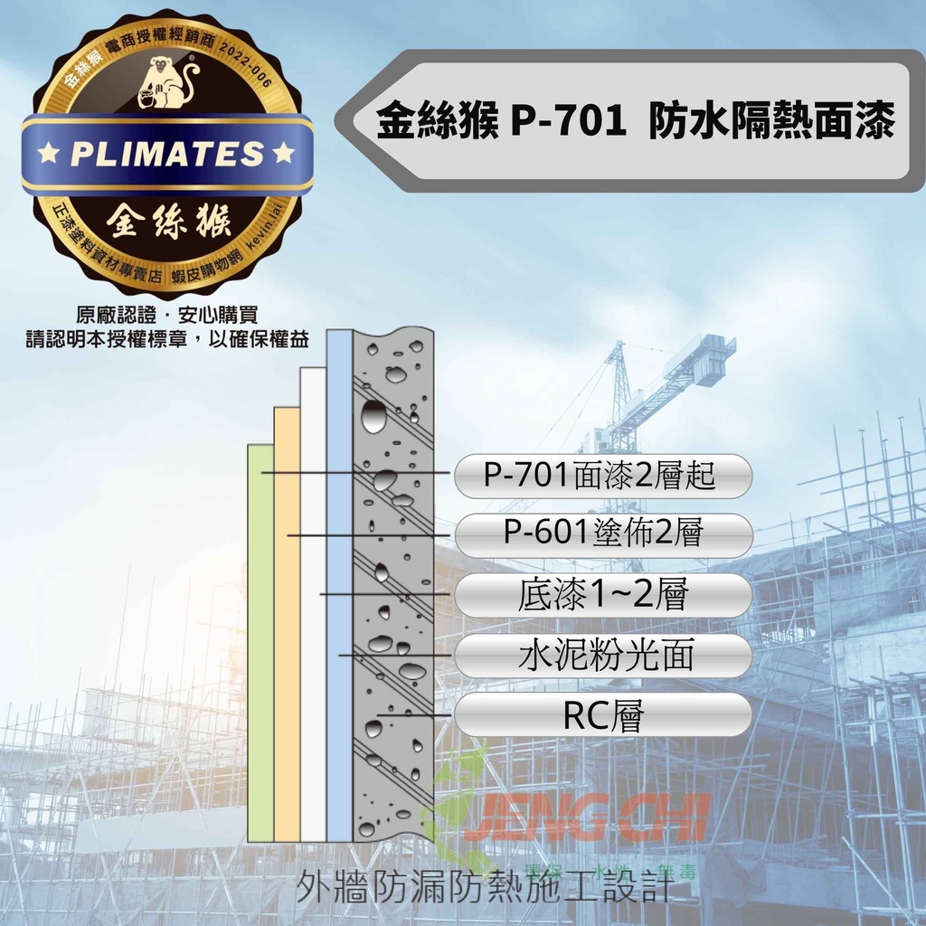 【正漆】金絲猴 P-701 防水防熱面漆 / 即開即用 / 防水性強/防水漆