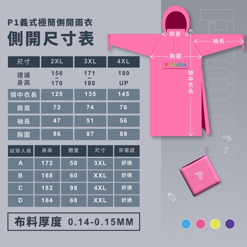 【PIOGGIA】義式極簡側開雨衣 成人款 機車騎士