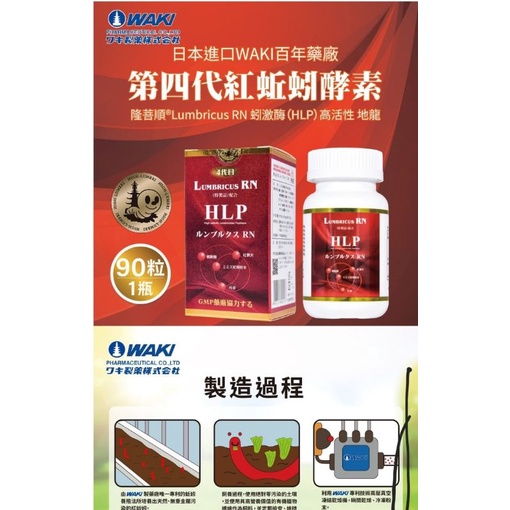 【日本進口WAKI百年藥廠 原廠製膠囊 第四代紅蚯蚓酵素】隆菩順RLumbricus RN 蚓激酶HLP)(高活性