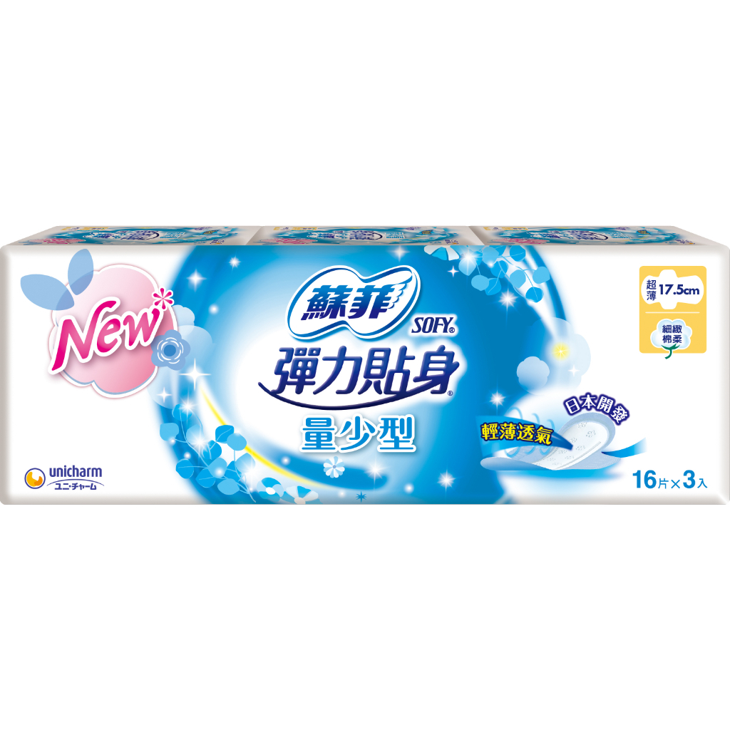 蘇菲 彈力貼身 量少潔翼 衛生棉17.5cm16片 3入【小女子】