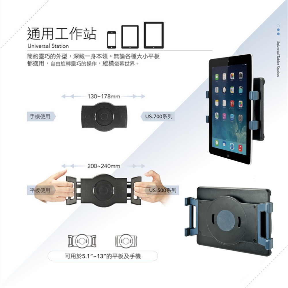 AIDATA愛得他 5.1~13吋磁吸式萬用手機/平板電腦支架 US-5114M 附贈7001-U夾具
