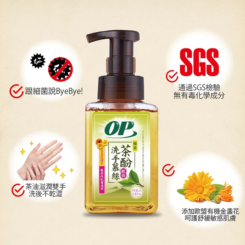 OP 茶酚洗手慕斯 擠壓瓶 補充包 300ml 洗手乳 有機認證 天然無毒 含抗菌成份 洗手慕斯 《昇瑋五金》
