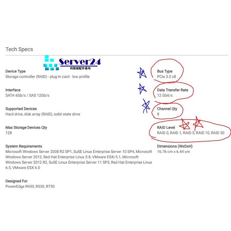 DELL PERC H330 HBA330 12GB/s RAID P2R3R / GDJ3J / 0GDJ3J